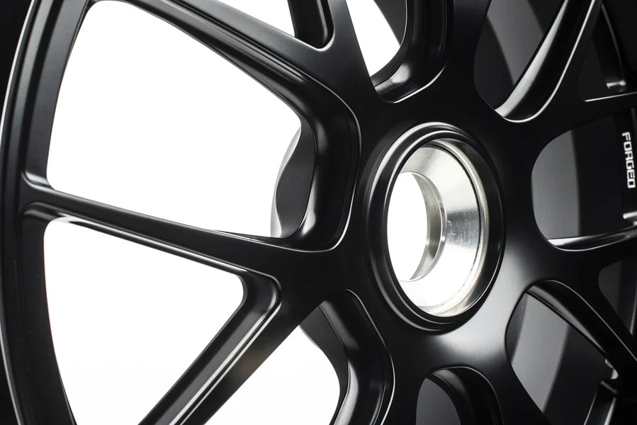 This 20x9 ET52 front centrelock specification is engineered specifically for Porsche models equipped with factory centrelock hubs. The striking Machine Black finish delivers a bold motorsport aesthetic inspired by endurance racing and GT competition vehicles.